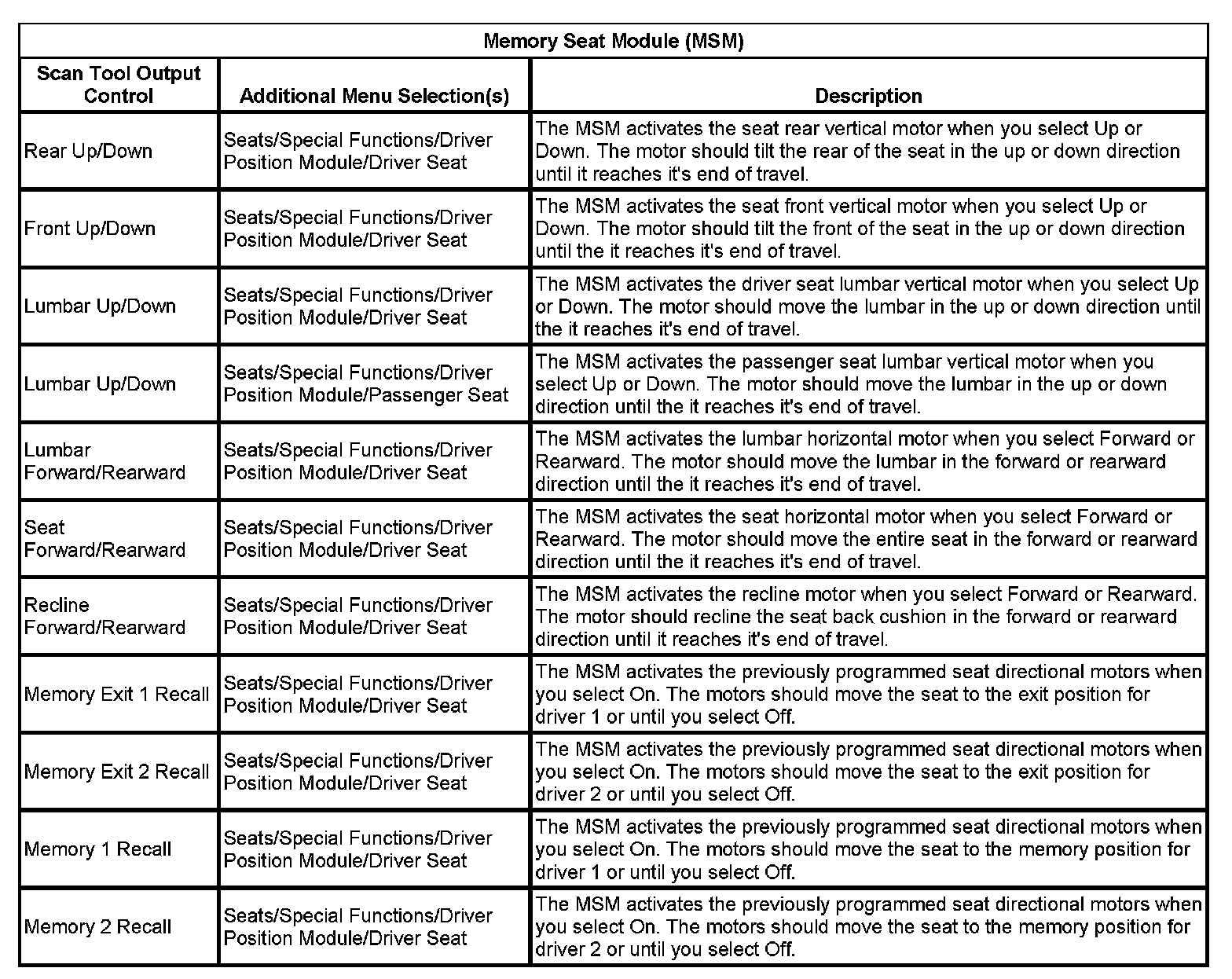 Memory Seat Module (MSM):