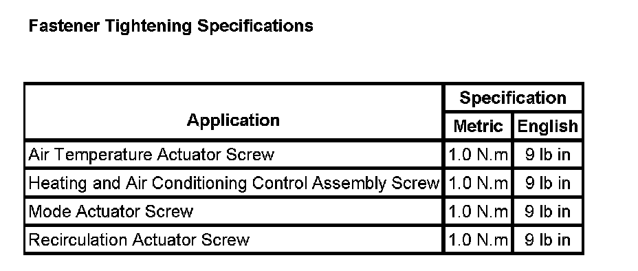 Fastener Tightening Specifications: