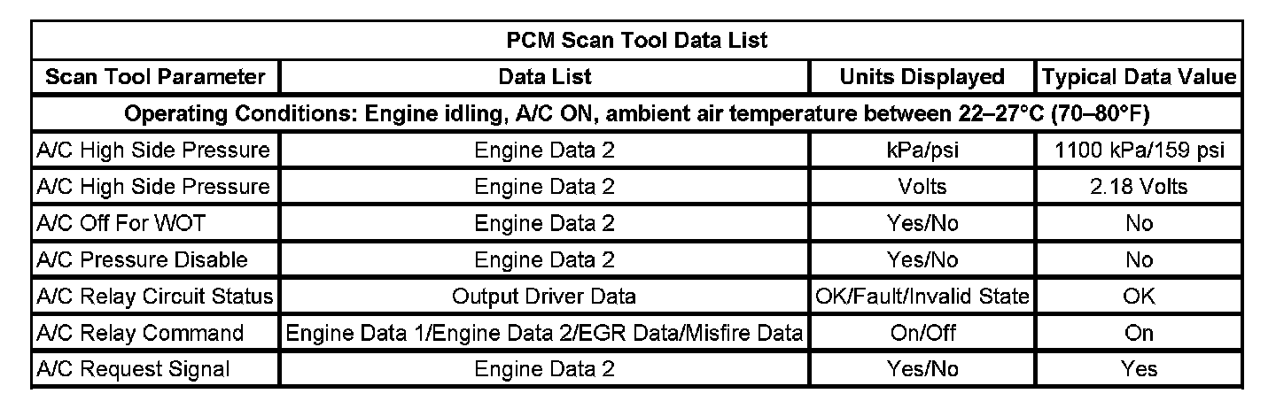 Use the Scan Tool Data Display Values and Definitions Information in order to assist in diagnosing the HVAC system. Compare the vehicles actual scan tool data with the typical data display value table information. Use the data information in order to aid in understanding the nature of the problem when the vehicle does not match with the typical data display values.