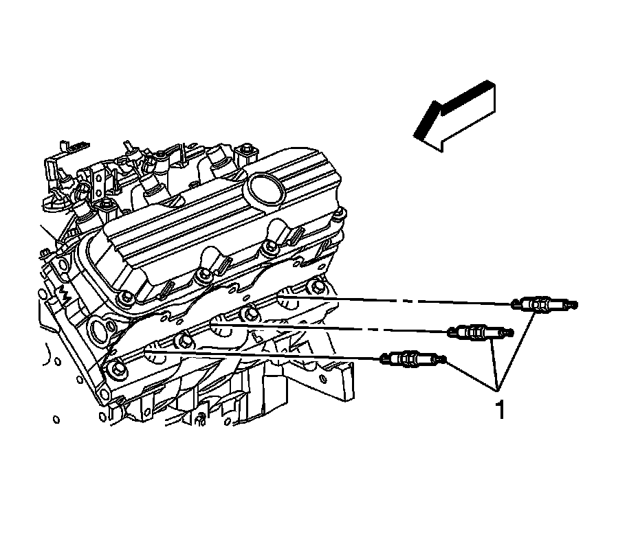 4. Remove the spark plugs (1) from the engine. (front plugs shown, rear plugs similar).