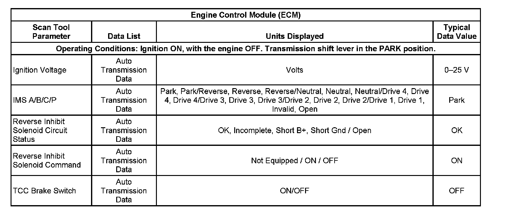 Scan Tool Data List