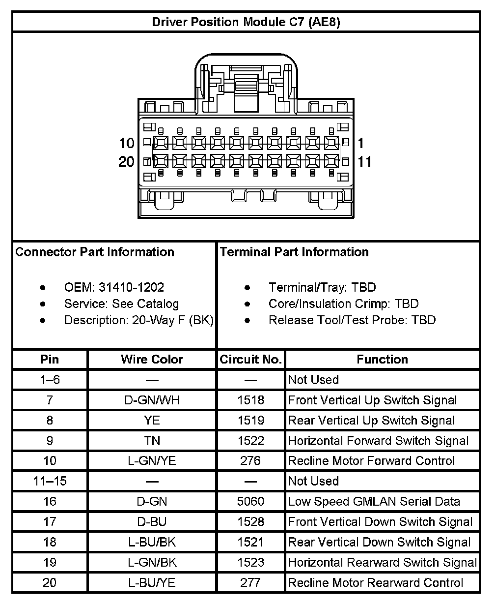 Driver Position Module C7 (With RPO Code AE8):