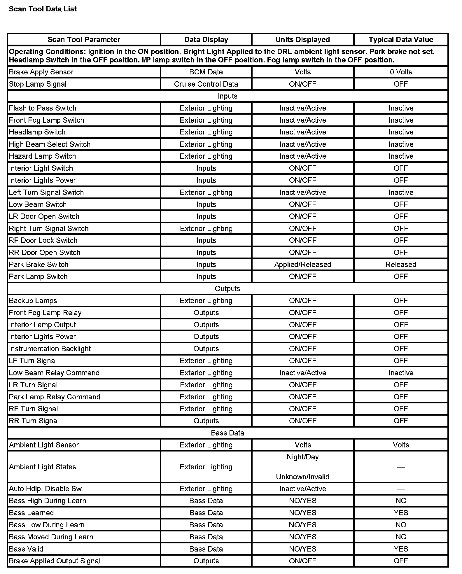 Scan Tool Data List