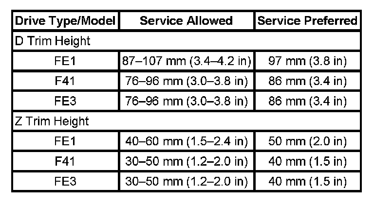 Trim Height Specifications: