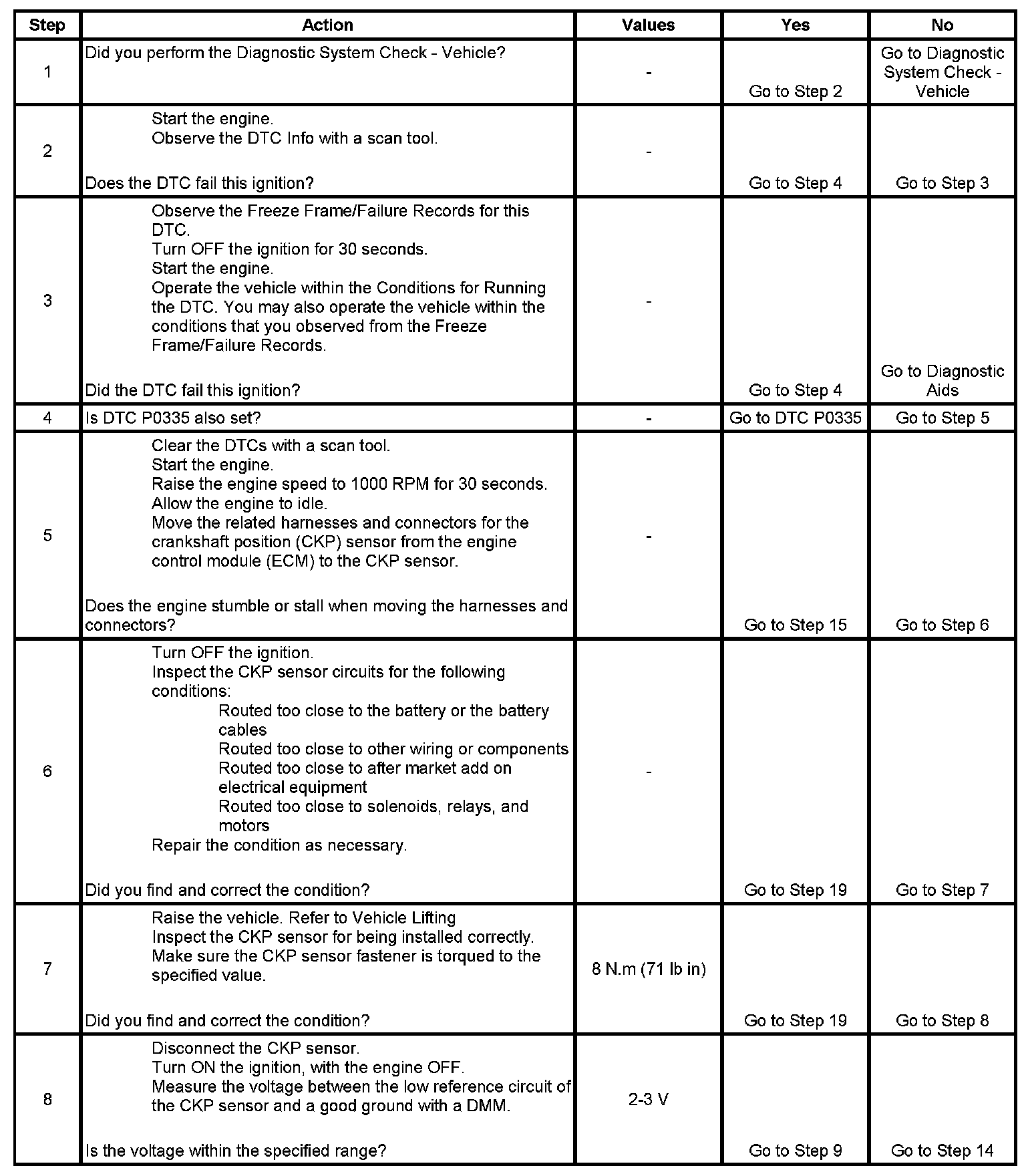 7. This step is testing if the CKP sensor is installed correctly. A CKP sensor that is not fully seated, may cause this DTC to set.