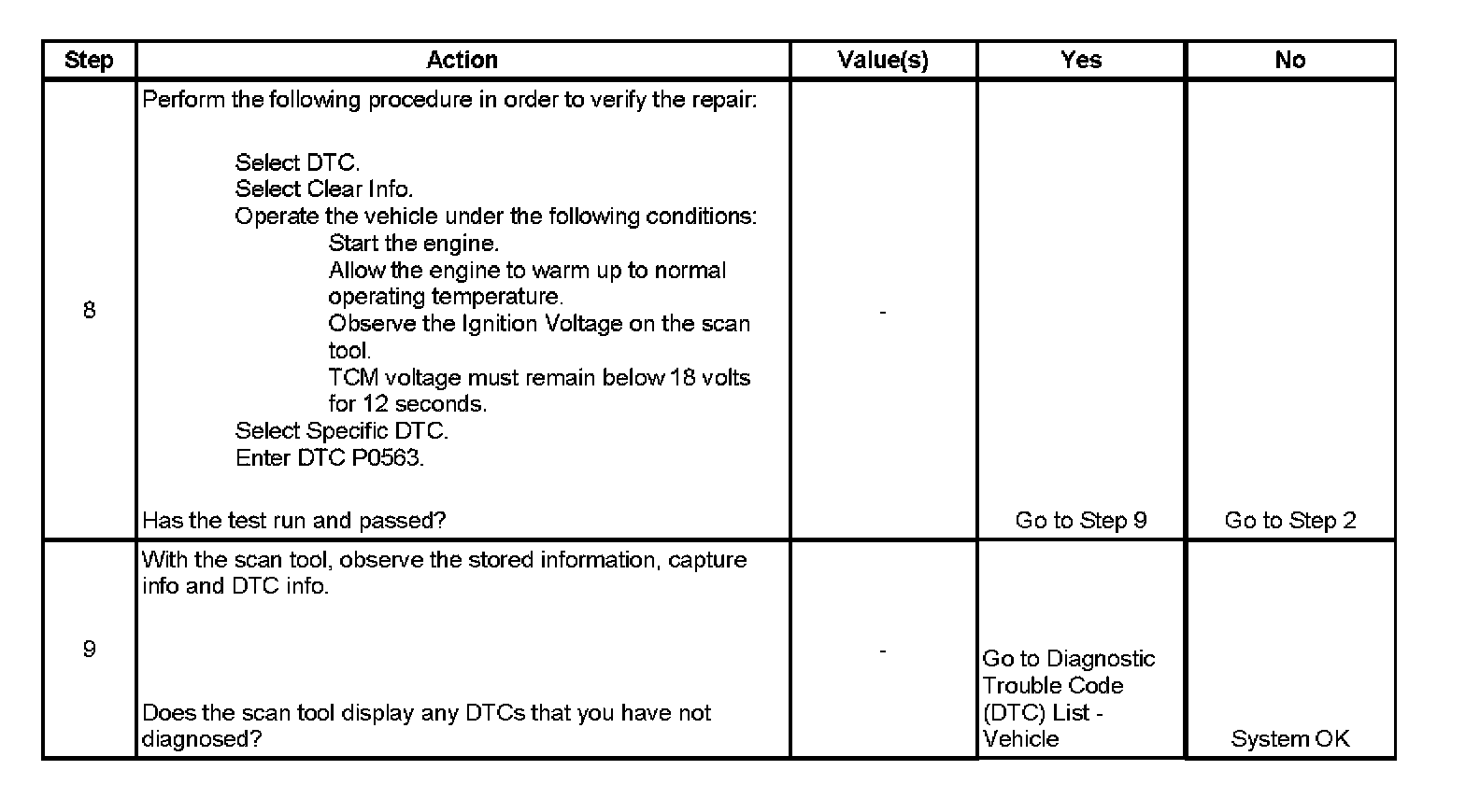 * The TCM stores DTC P0563 in TCM history.