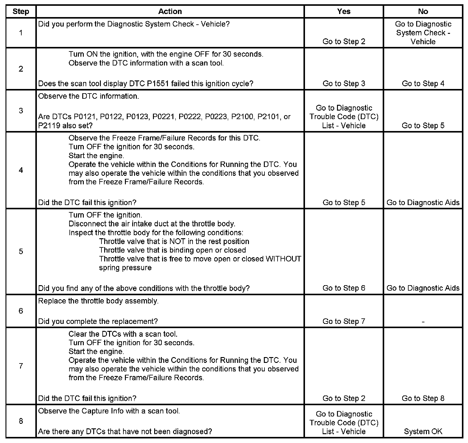 DTC P1551 Throttle Valve Rest Position Not Reached During Learn