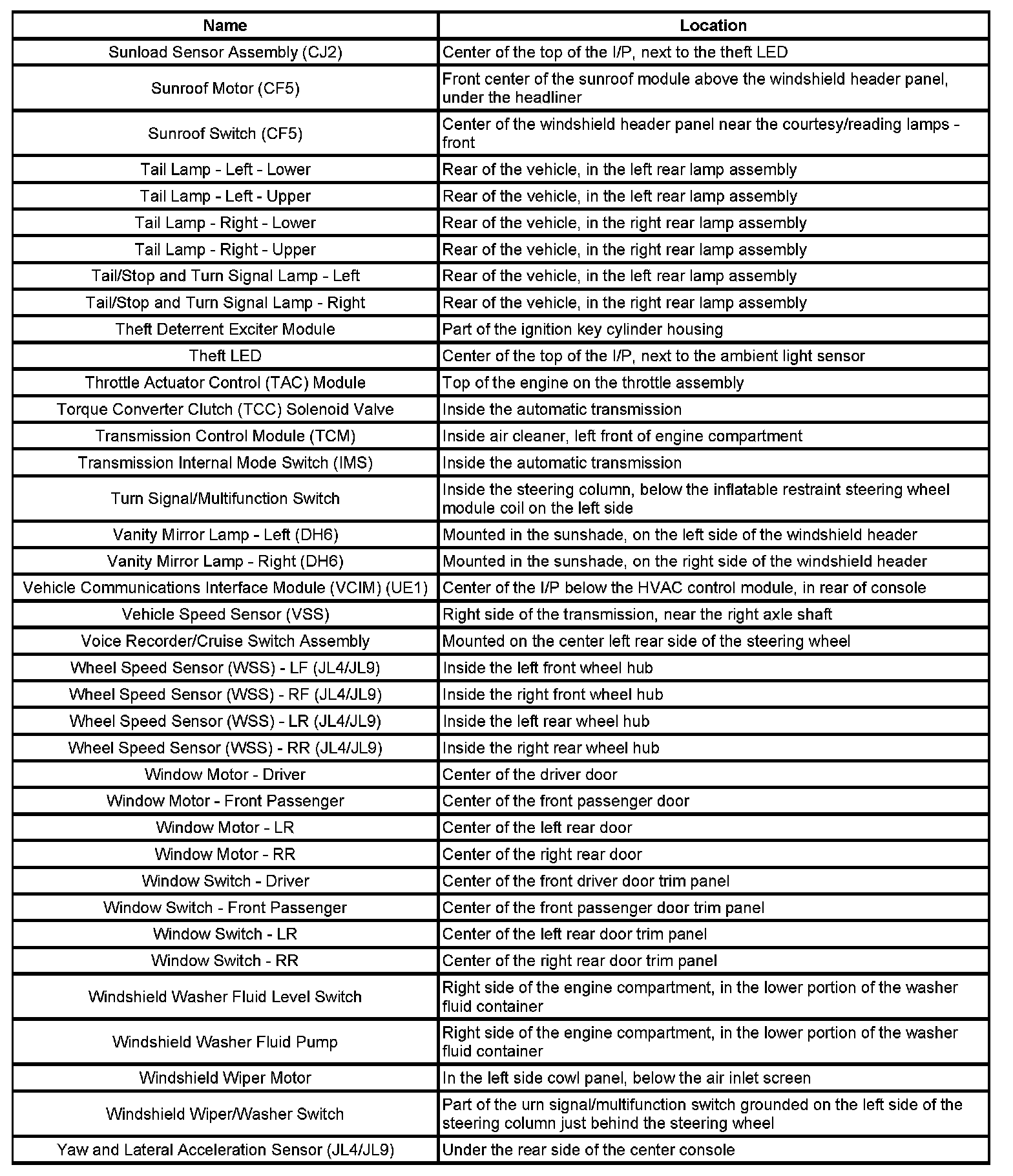 Master Electrical Component List