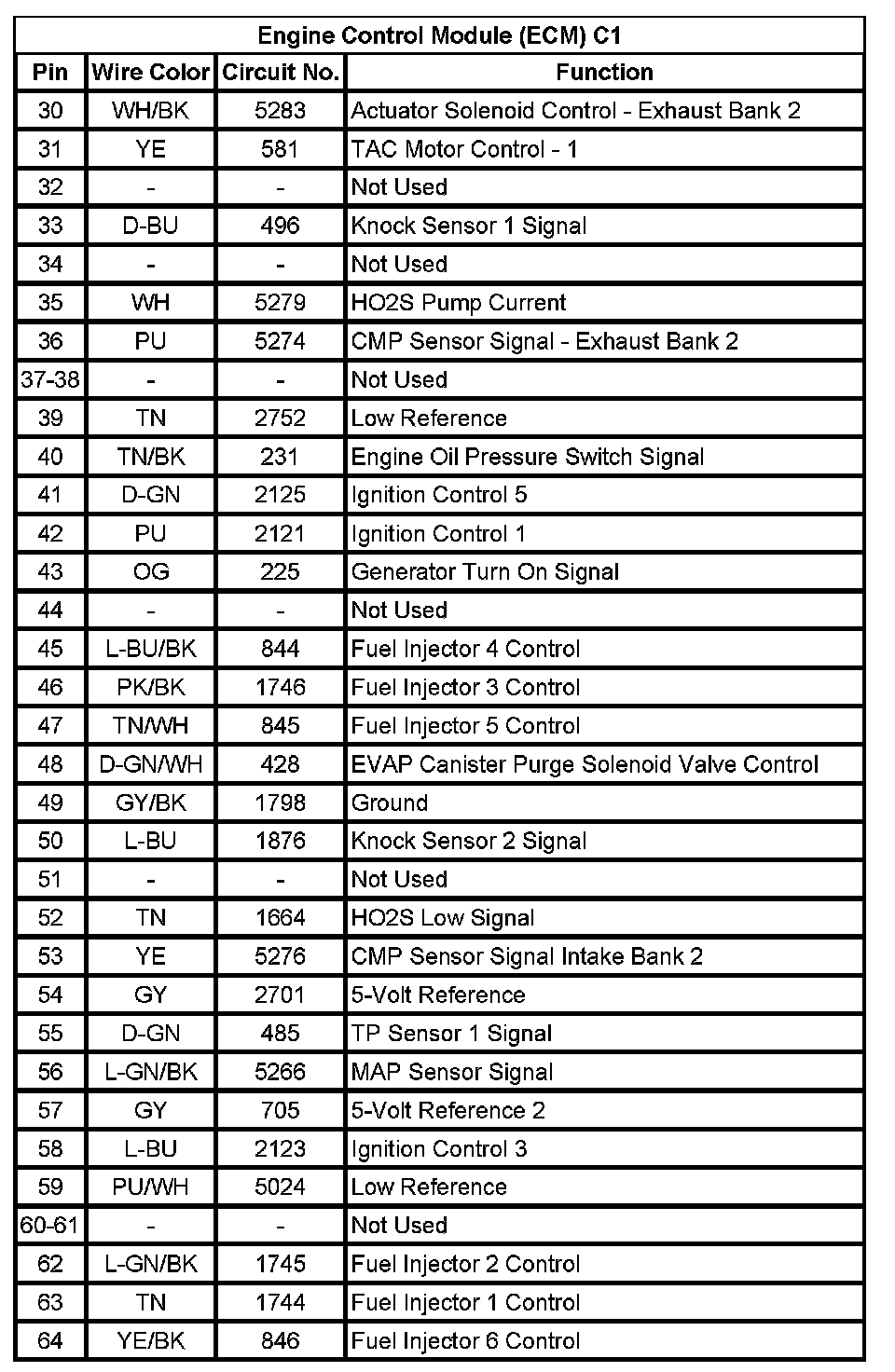 Engine Control Module (ECM) C1 (Pin 30 To 64):