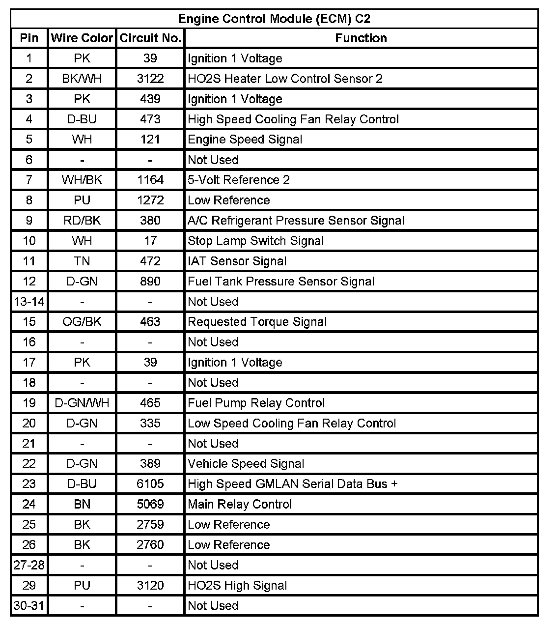 Engine Control Module (ECM) C2 (Pin 1 To 31):
