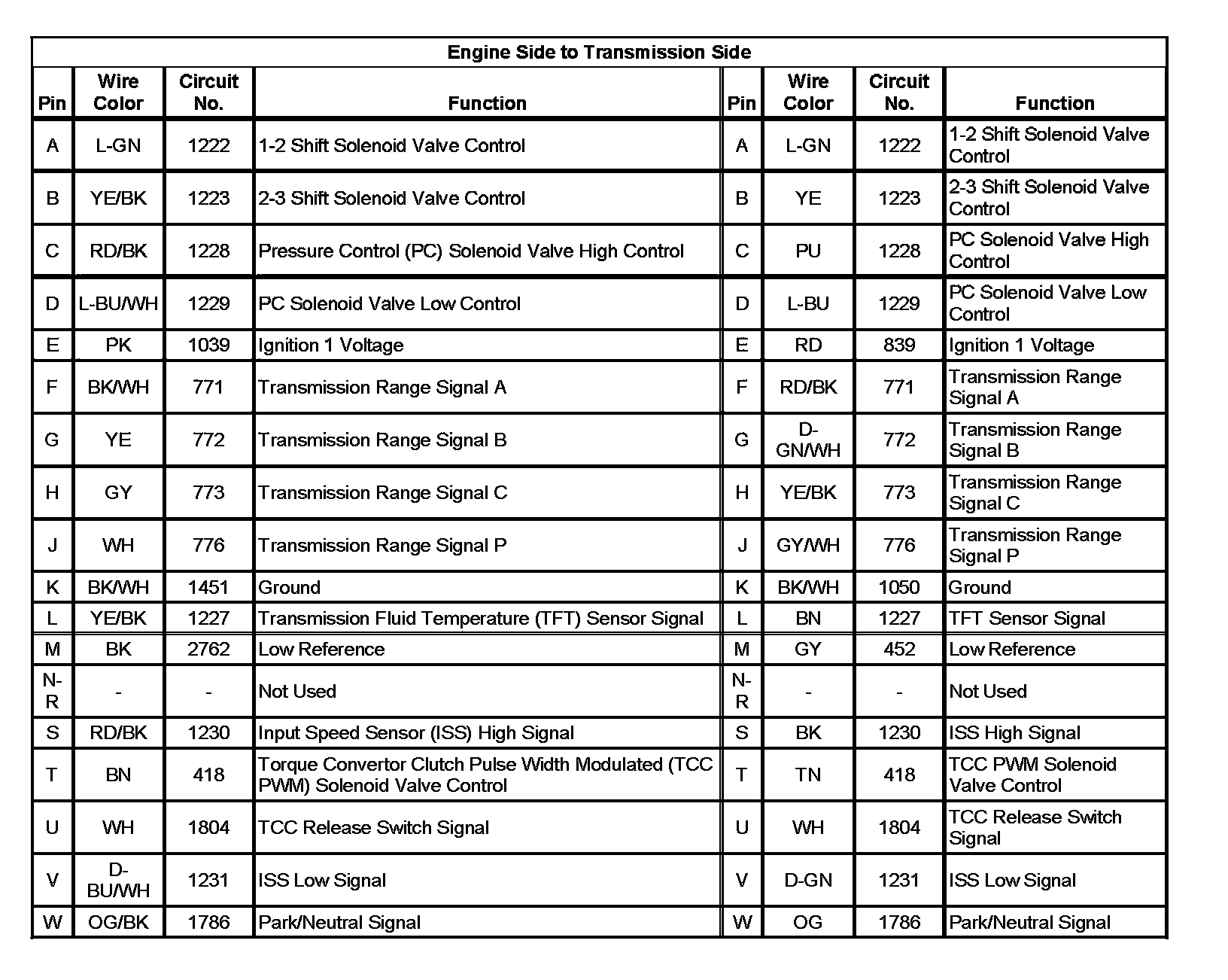 Automatic Transmission Inline 20-Way Connector End View (3.6L)