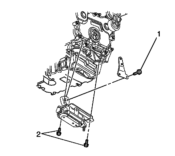 4. Install all the engine mount bracket bolts (1, 2). Hand tighten only.