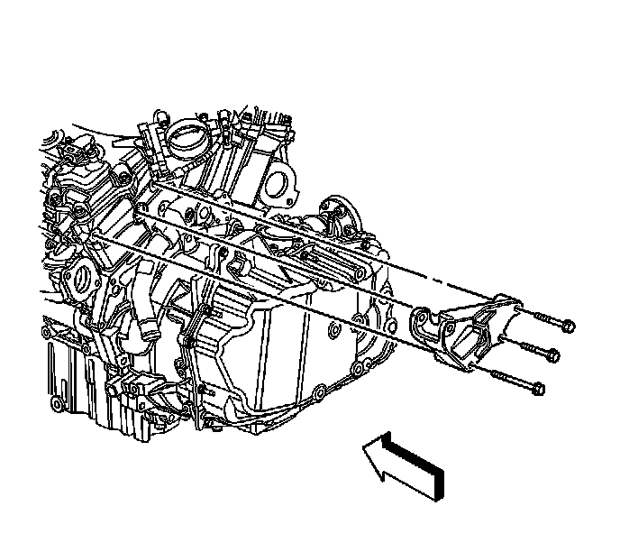 5. Remove the left engine mount strut bracket and bolts from the vehicle.