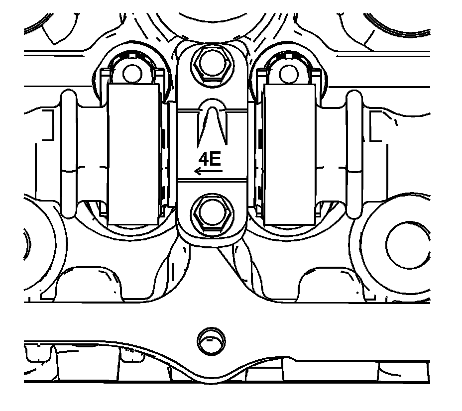 10. Install the remaining bearing caps with their orientation mark toward the center of the cylinder head.