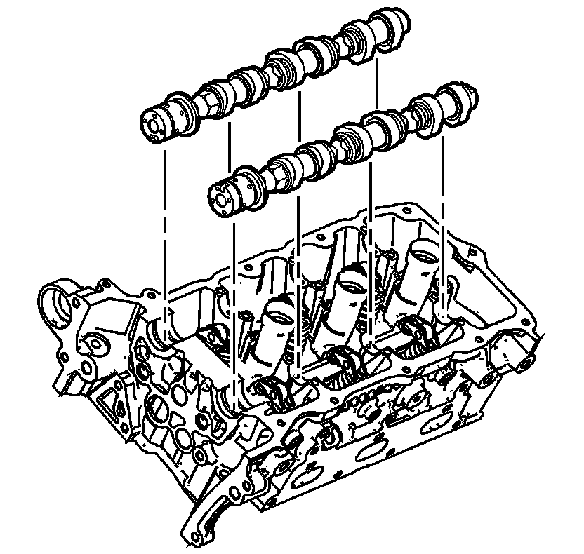 4. Apply a liberal amount of lubricant GM P/N 12345501 (Canadian P/N 992704) or equivalent to the camshaft journals and the left cylinder head camshaft carriers.