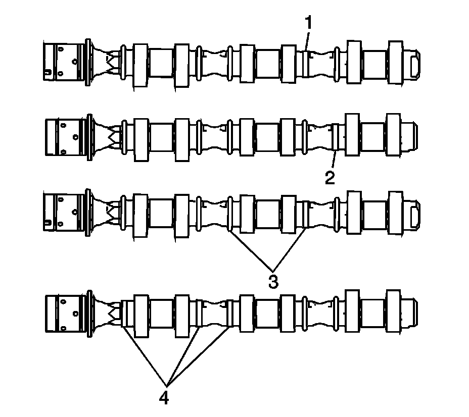 3. The number 3 and 4 identification rings for the left intake camshaft is machined off (3) - Fourth Design, Camshaft Timing Drive System.