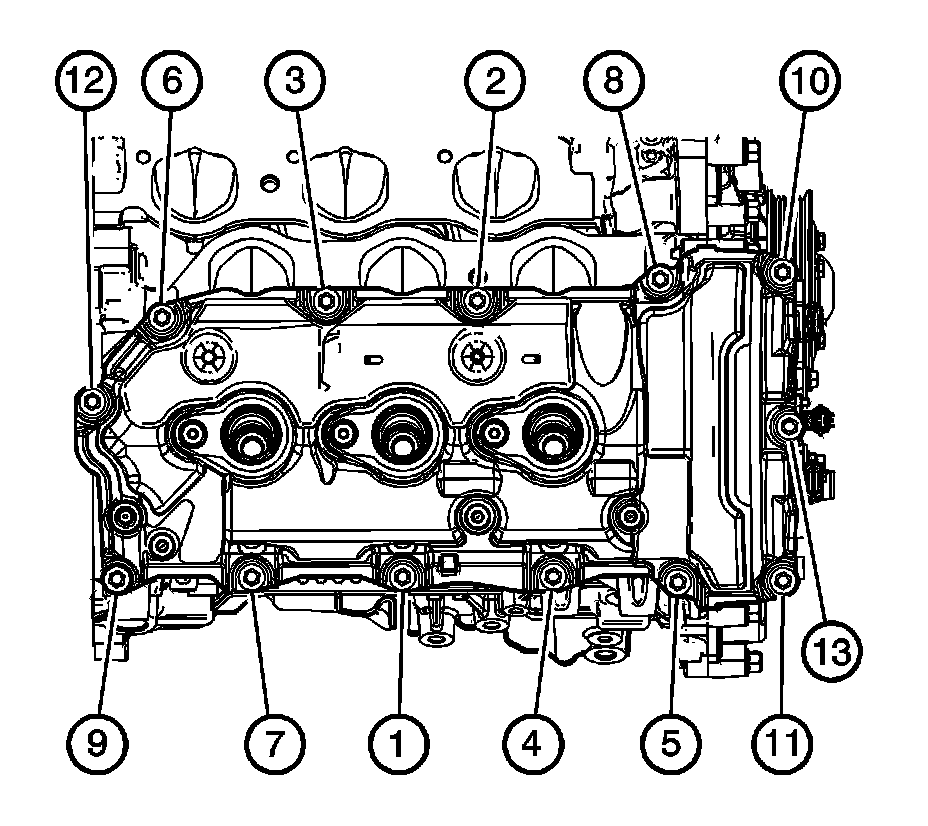 Tighten the right camshaft cover bolts in the sequence to 10 N.m (89 lb in).