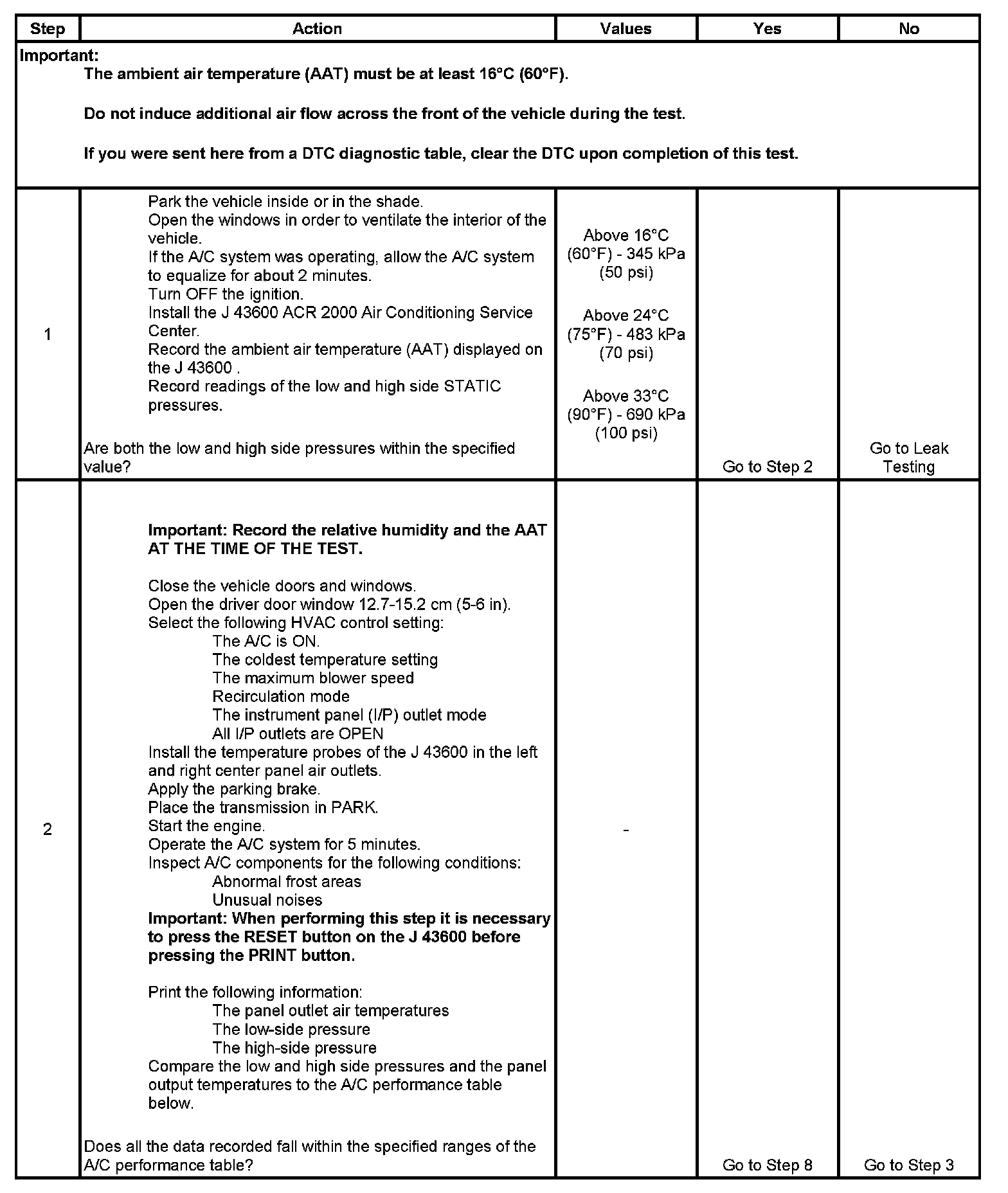 1. This step determines if the A/C system has at least the minimum refrigerant charge required to operate the system without damage.
