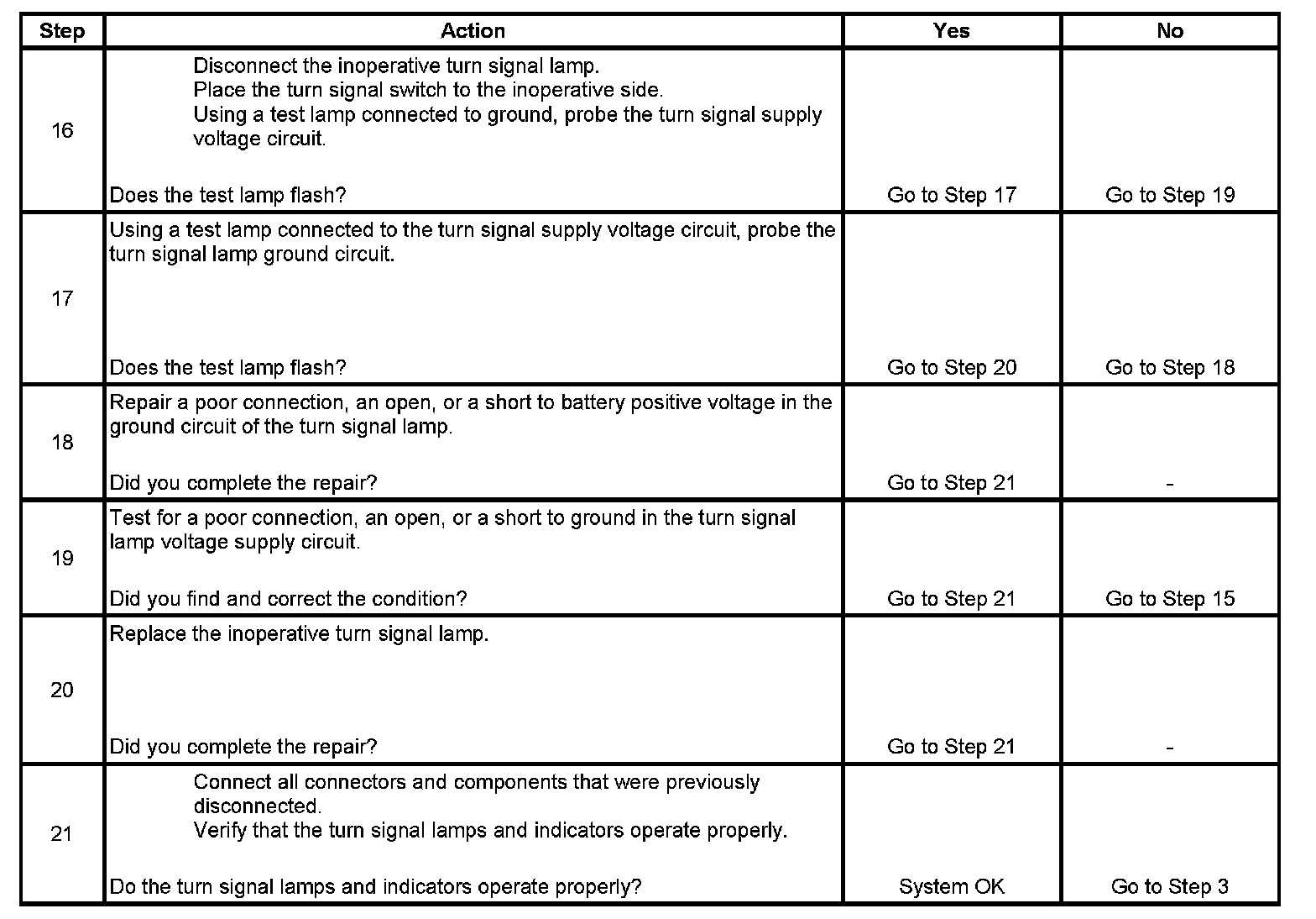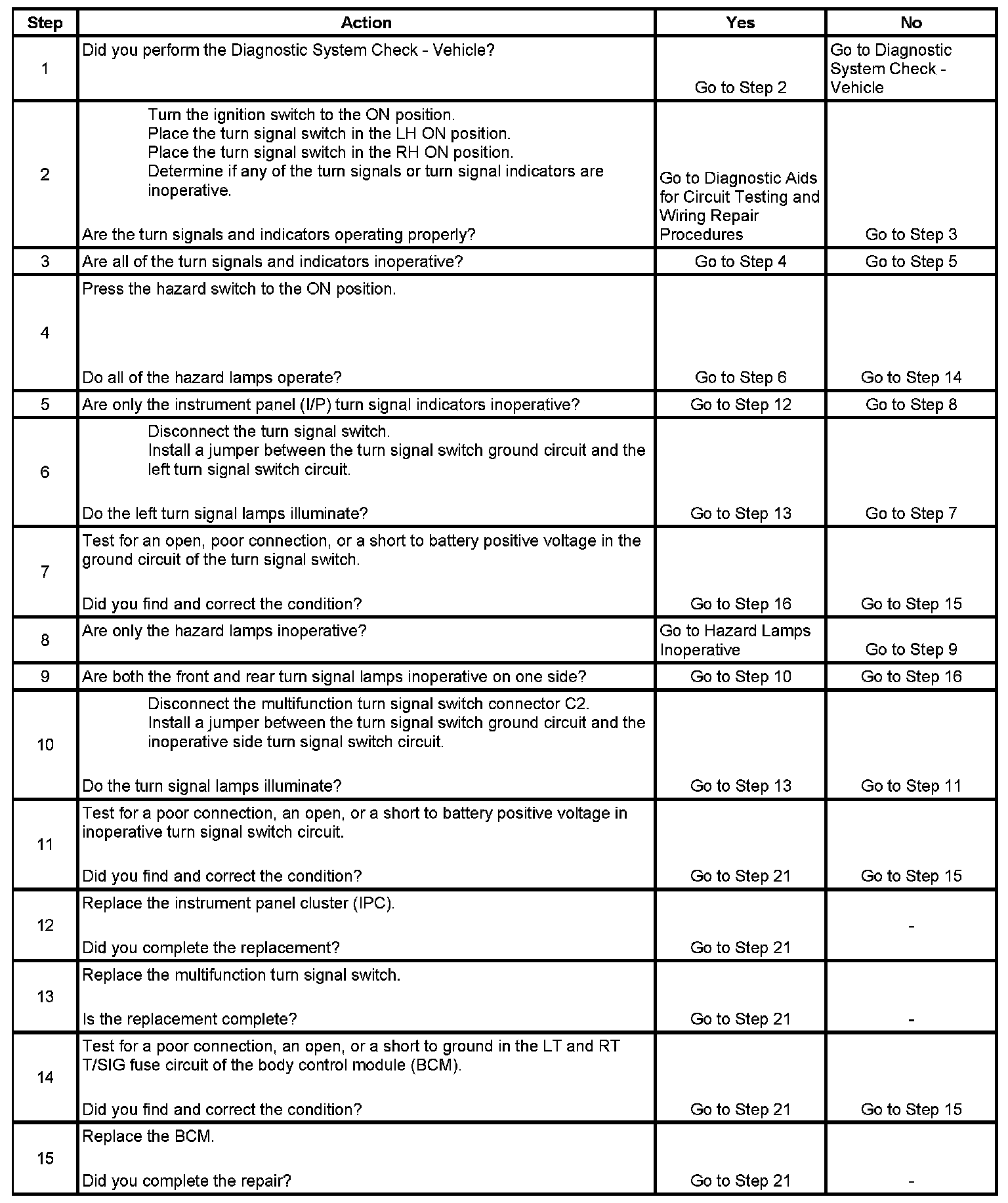 Turn Signal Lamps and/or Indicators Inoperative