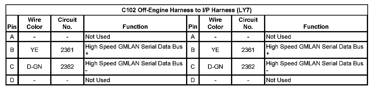 C102 Off-Engine Harness TO I/P Harness (LY7):