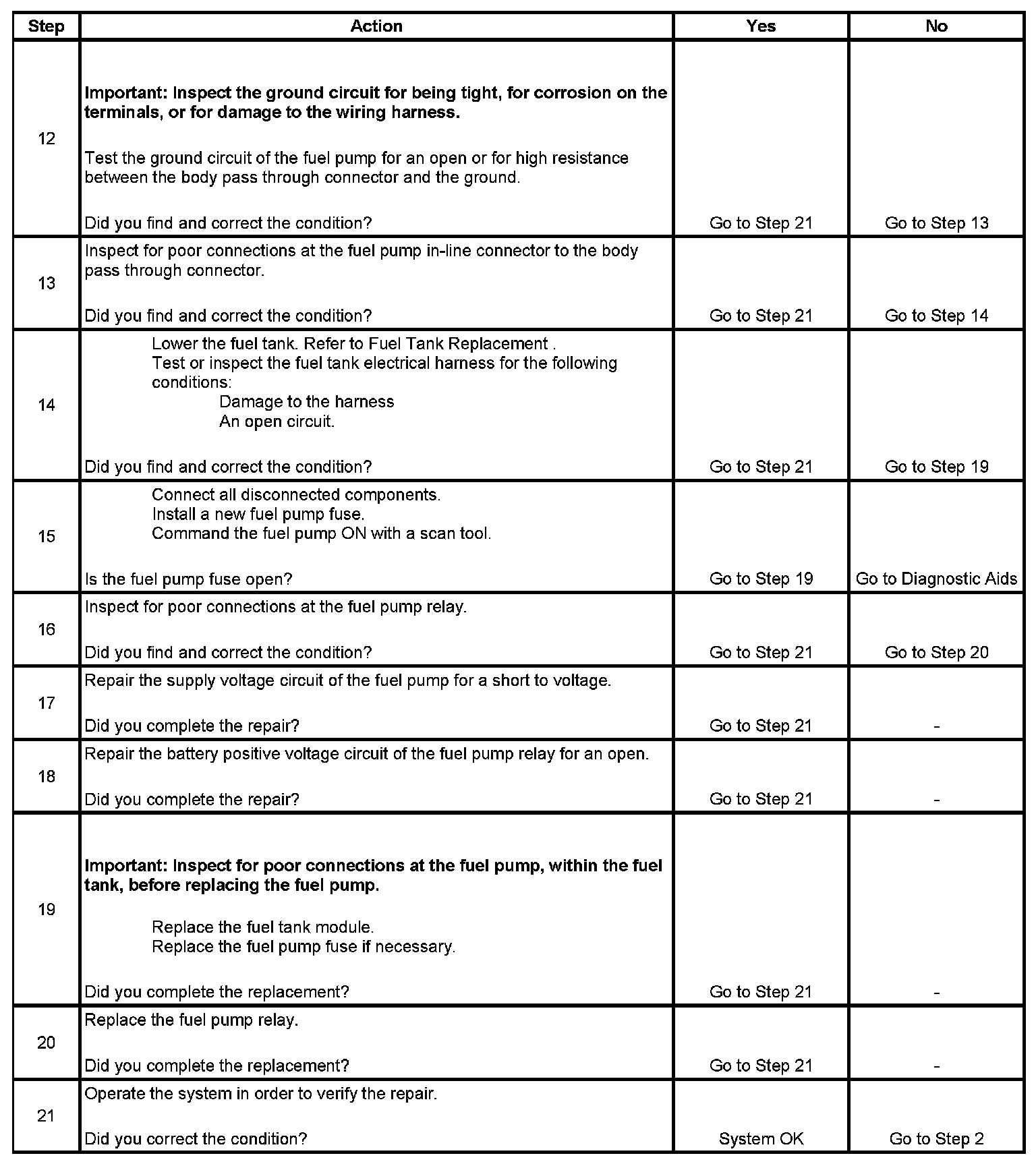 15. This step determines if the condition with the circuit is intermittent. If the fuse does not open, inspect the supply voltage circuit between the fuse and the fuel pump for an intermittent condition.