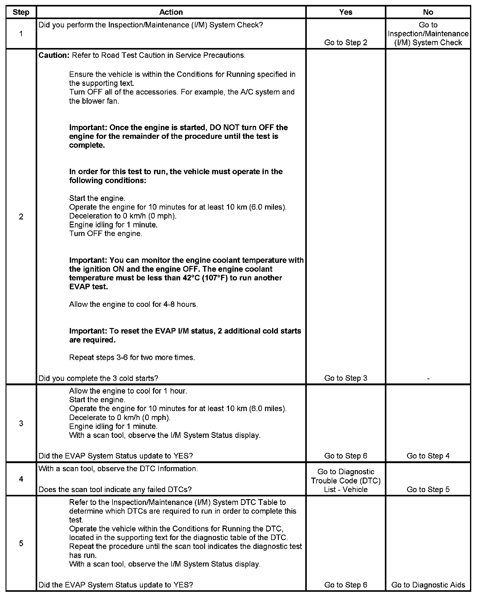 4. This step is to identify a first failure of a type B DTC. A DTC only appears on the I/M System Status display when it becomes a MIL illuminating DTC. This occurs on the second failure of a type B DTC. A first failure of a type B DTC will not allow the I/M System Status to update to YES. Refer to Diagnostic Aids.