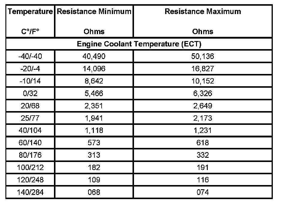 Temperature Versus Resistance - Engine Coolant Temperature Sensor