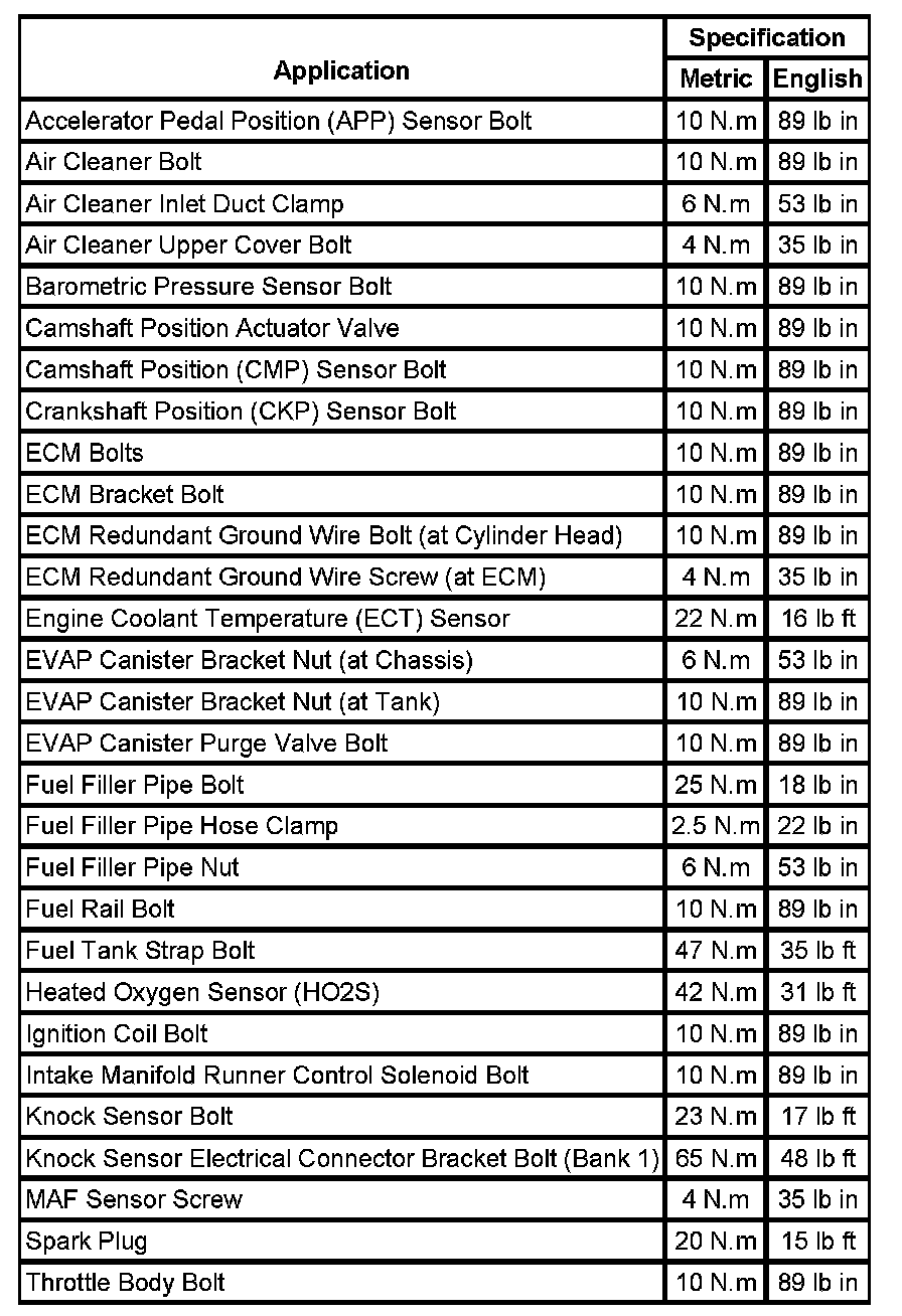 Fastener Tightening Specifications