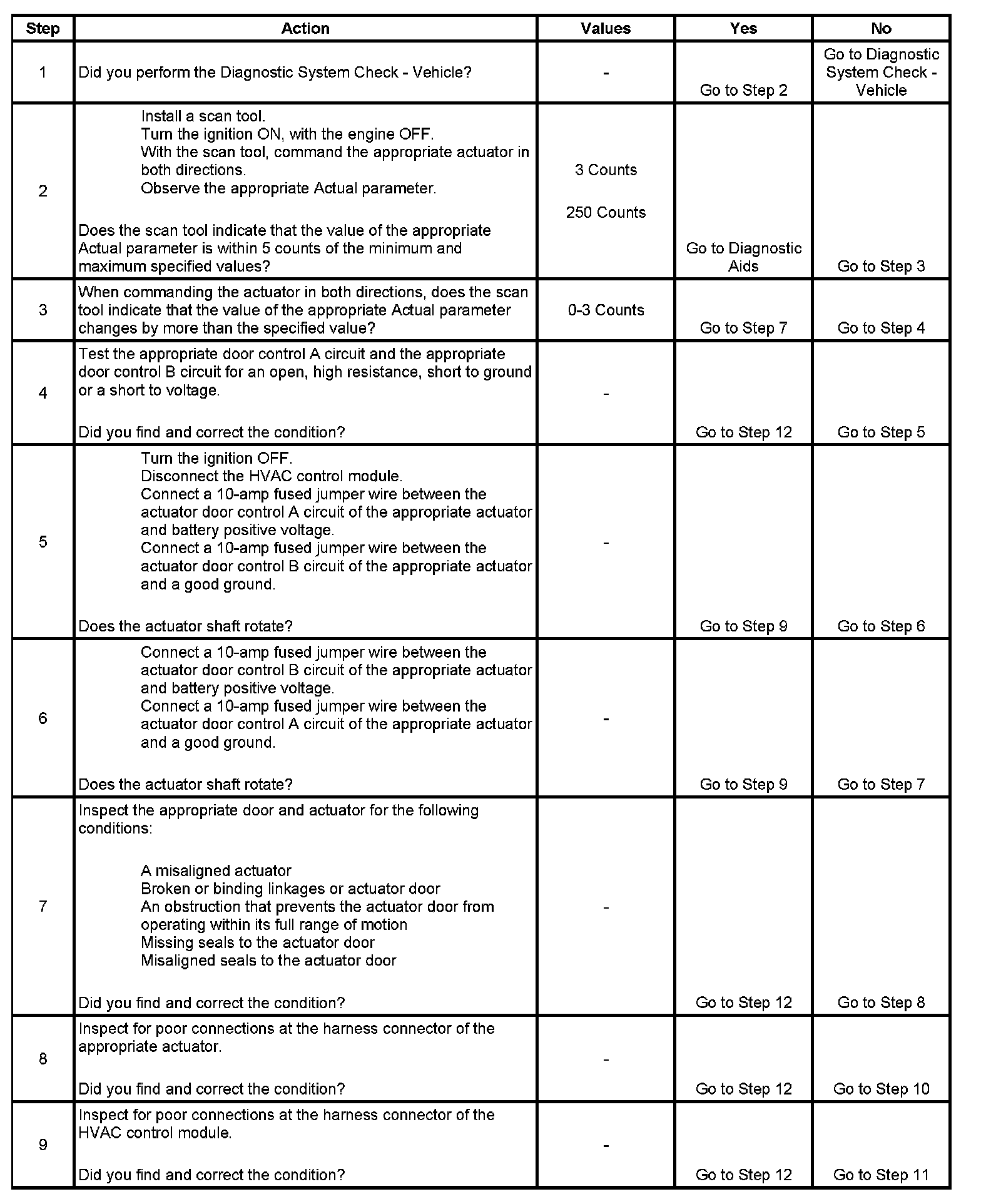 * The HVAC control module determines that the actual door position does not equal the commanded door position. The HVAC control module commands the door to move but does not see the expected number of pulses between positions.