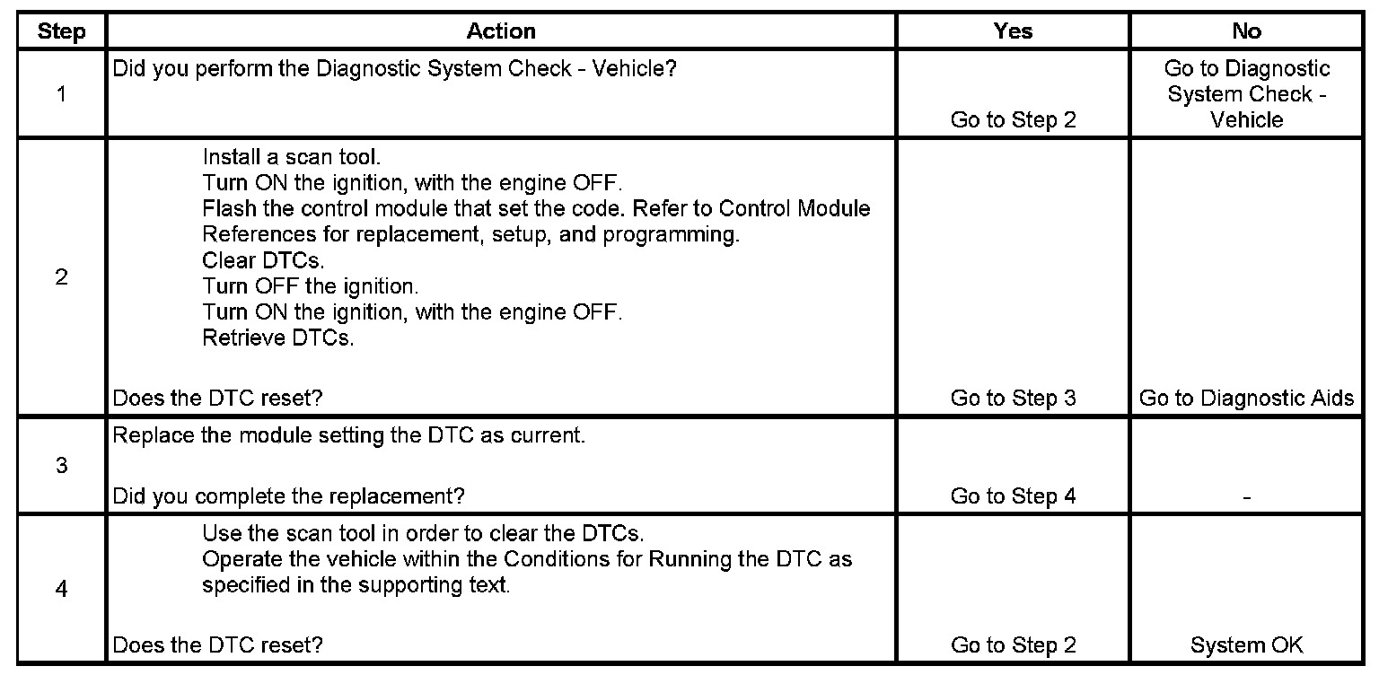 The module retains a copy of the FLASH calibration checksum reference value in the FLASH memory. During wake-up the module shall compute the FLASH calibration value and compare it to the FLASH calibration checksum reference value. If the 2 values do not match the module sets this DTC.