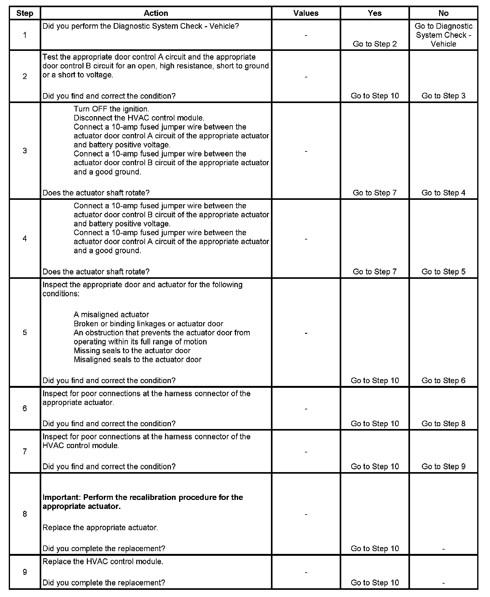 * Inspect the appropriate actuator door and actuator for the following conditions: