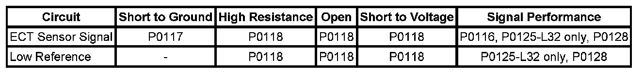 * If a short to a separate voltage source occurs, this DTC may set and damage the ECT sensor.