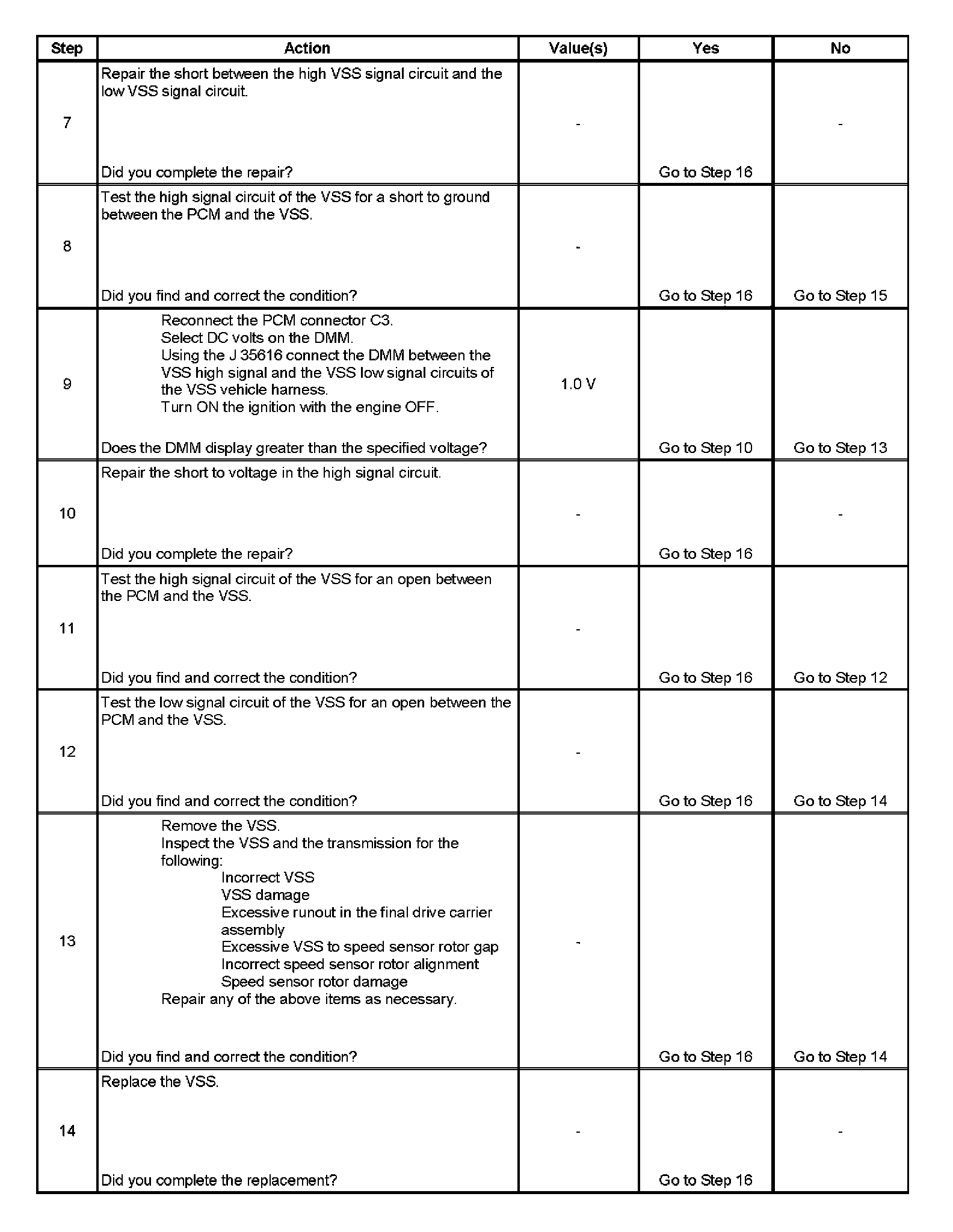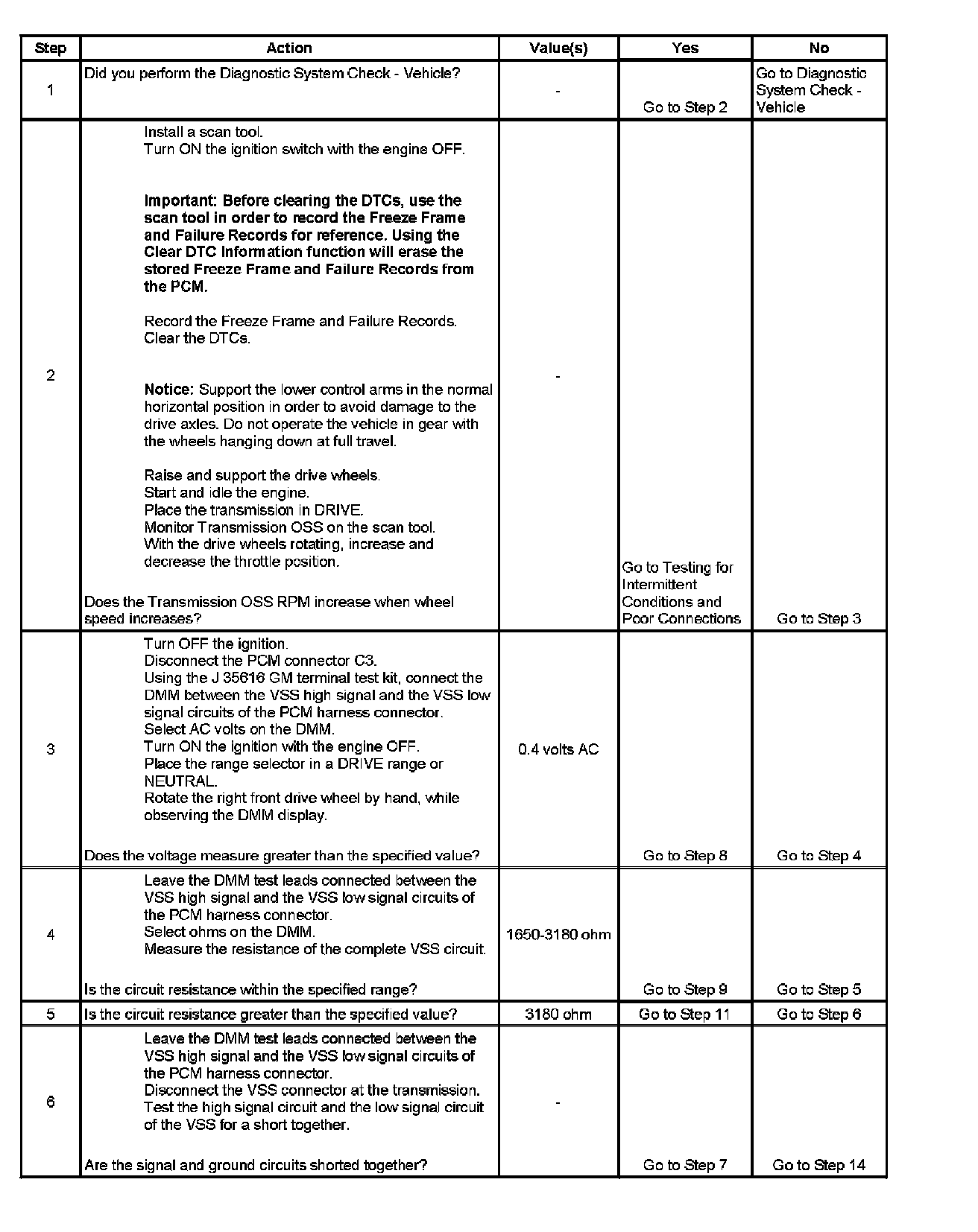 3. This step tests the ability of the VSS to produce an AC voltage. This step also verifies the integrity of the wiring to the PCM.
