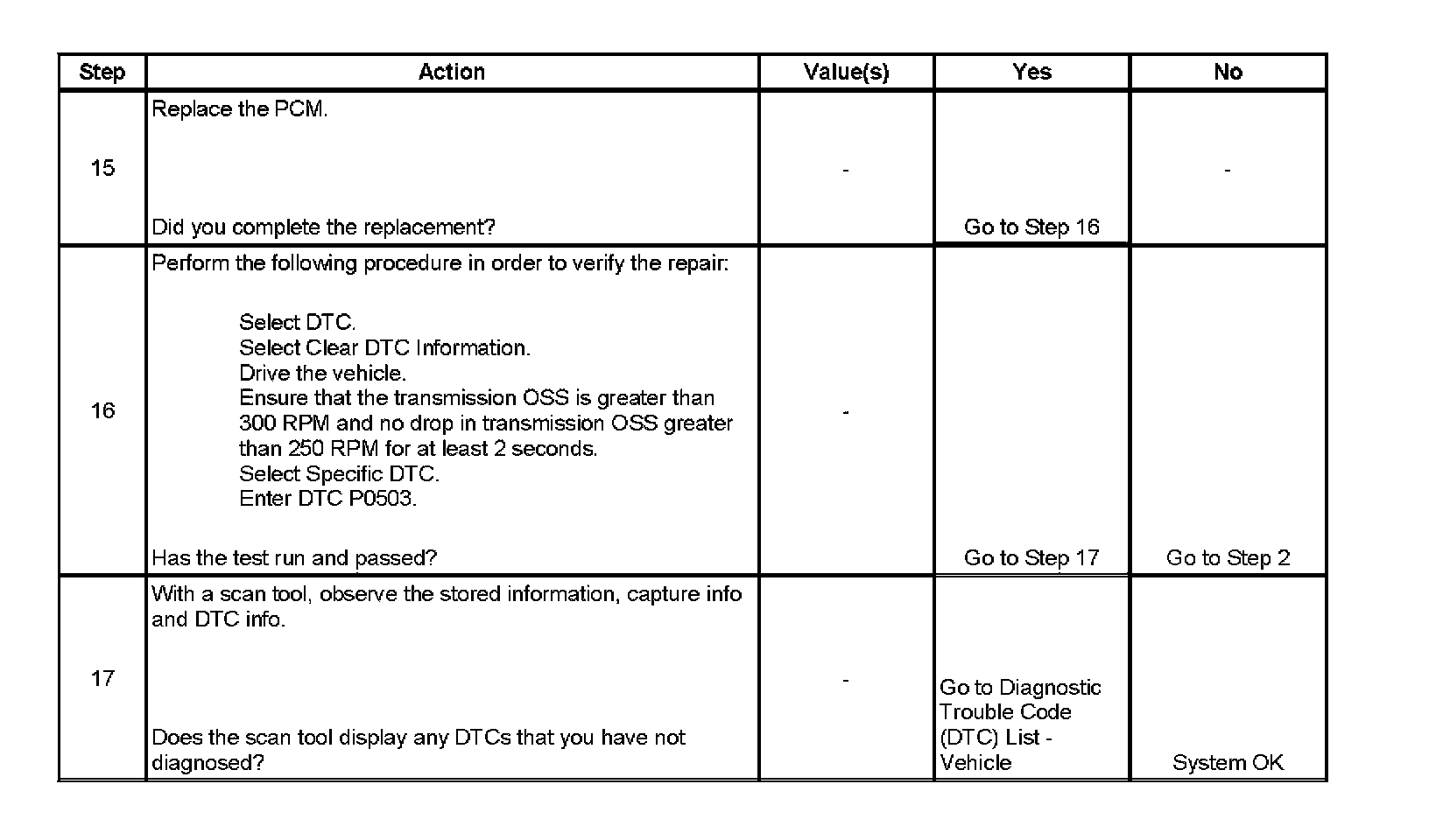 * The PCM stores DTC P0503 in PCM history during the second consecutive trip in which the Conditions for Setting the DTC are met.