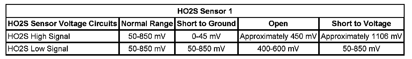 - The control module detects that the HO2S 1 voltage is less than 100 mV.