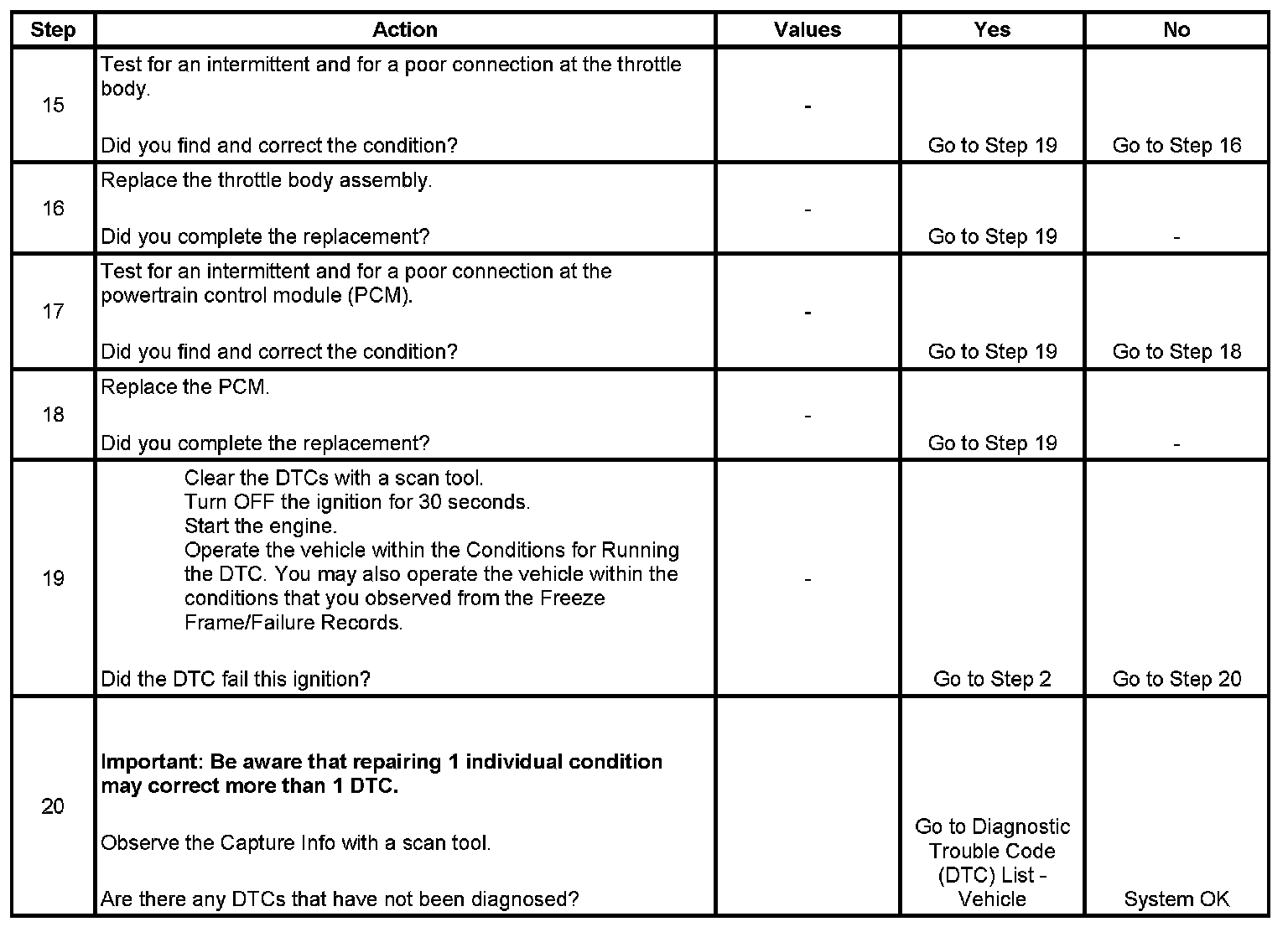 * A current DTC, Last Test Failed, clears when the diagnostic runs and passes.