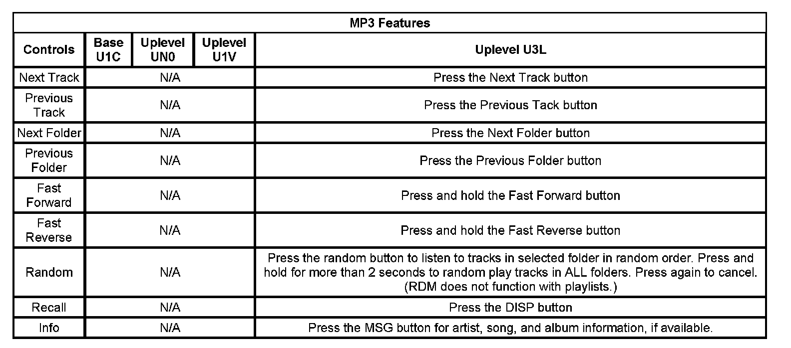* ID3 tag information is available during playback, providing the information was recorded with ID3 tags, version 1 or version 2. CD text information is not available with the US8 radio.