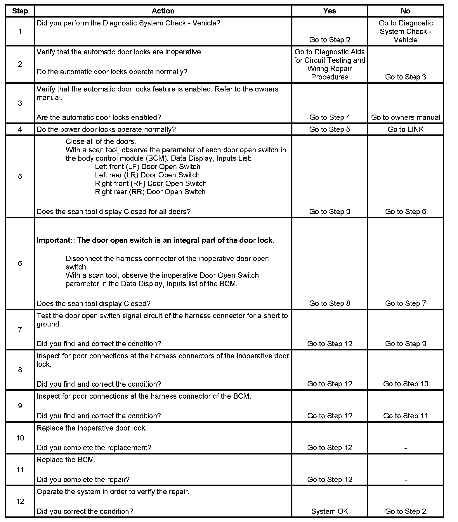 Automatic Door Locks Inoperative