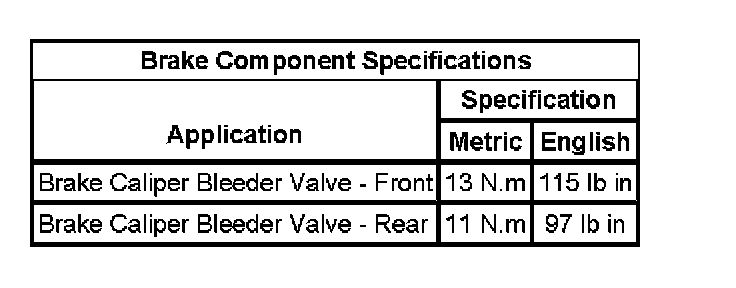 Brake Component Specifications: