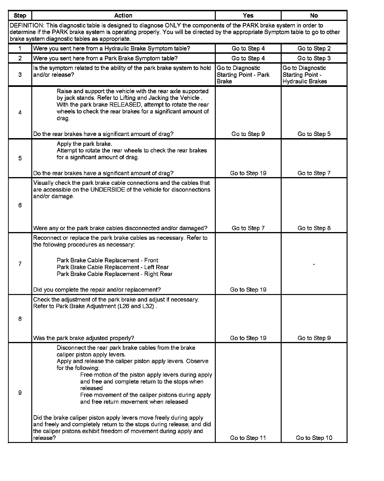 Park Brake System Diagnosis