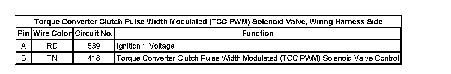 Torque Converter Clutch Pulse Width Modulated (TCC PWM) Solenoid Valve, Wiring Harness Side: