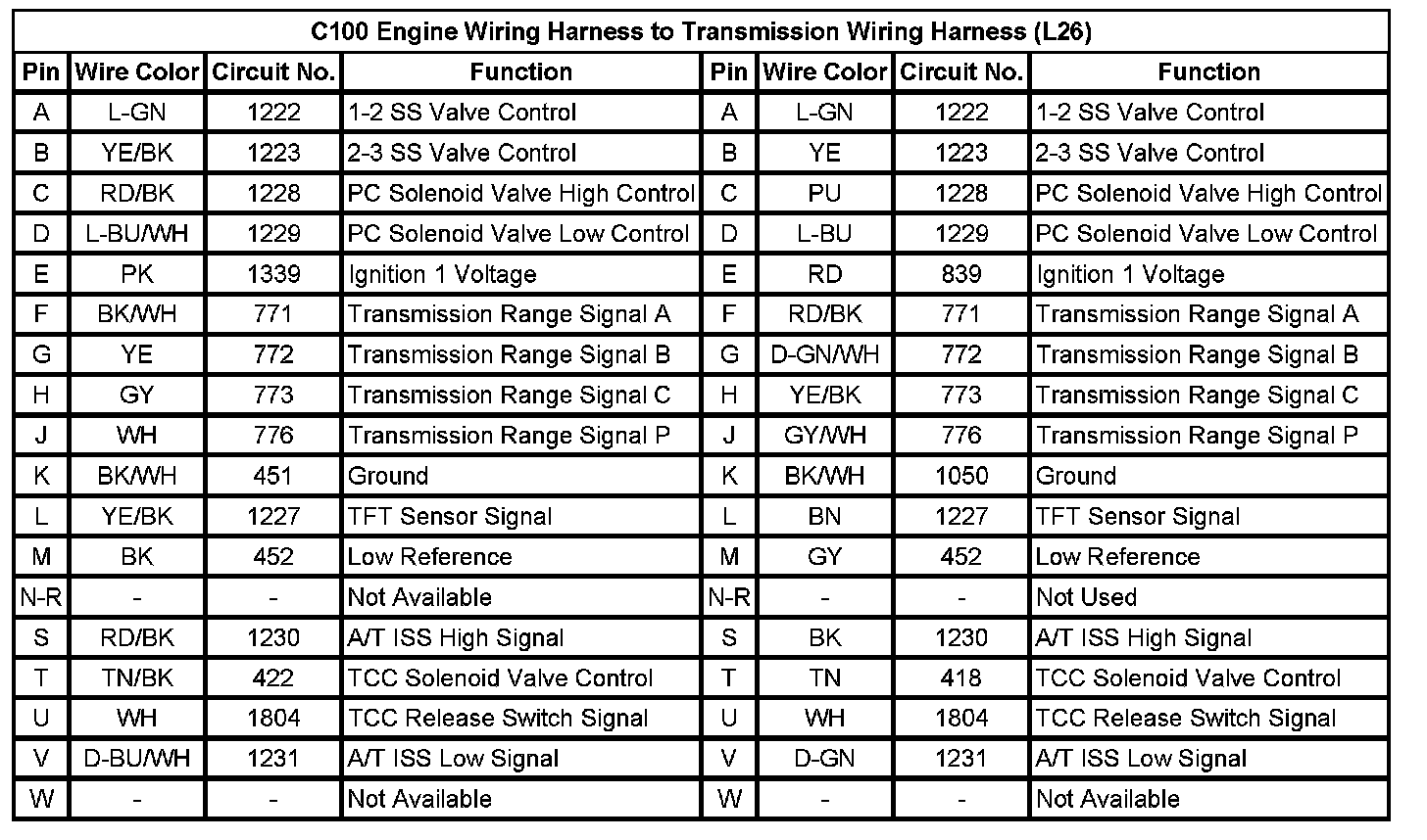 C100 Engine Wiring Harness to Transmission Wiring Harness (L26):