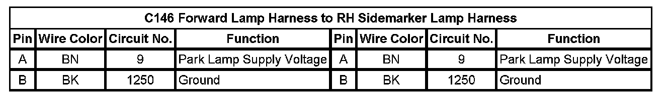 C146 Forward Lamp Harness to RH Sidemarker Lamp Harness: