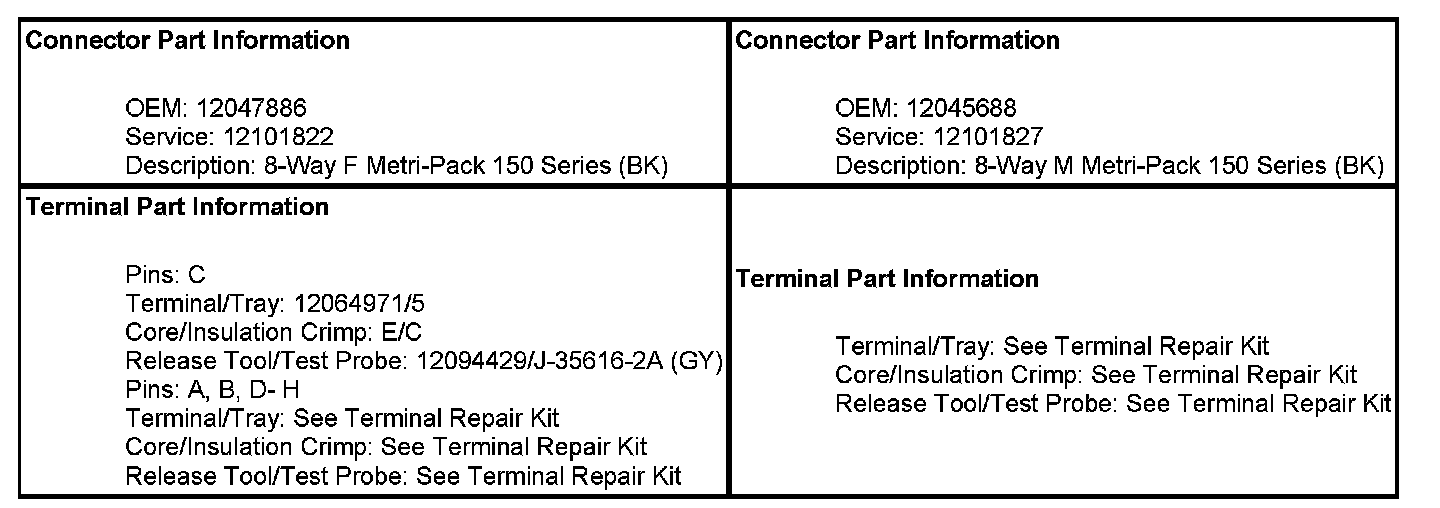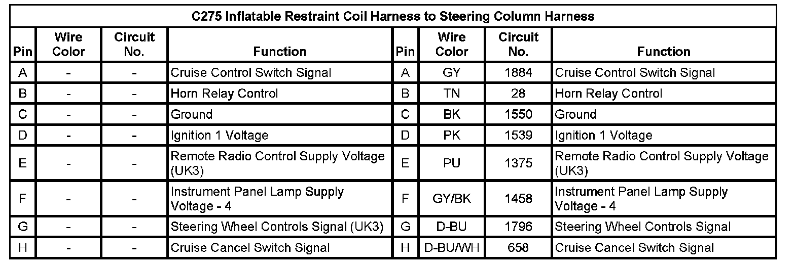Inline Harness Connector End ViewsC275 Inflatable Restraint Coil Harness to Steering Column HarnessC275 Inflatable Restraint Coil Harness to Steering Column Harness: