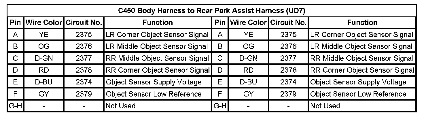 C450 Body Harness to Rear Park Assist Harness (UD7):
