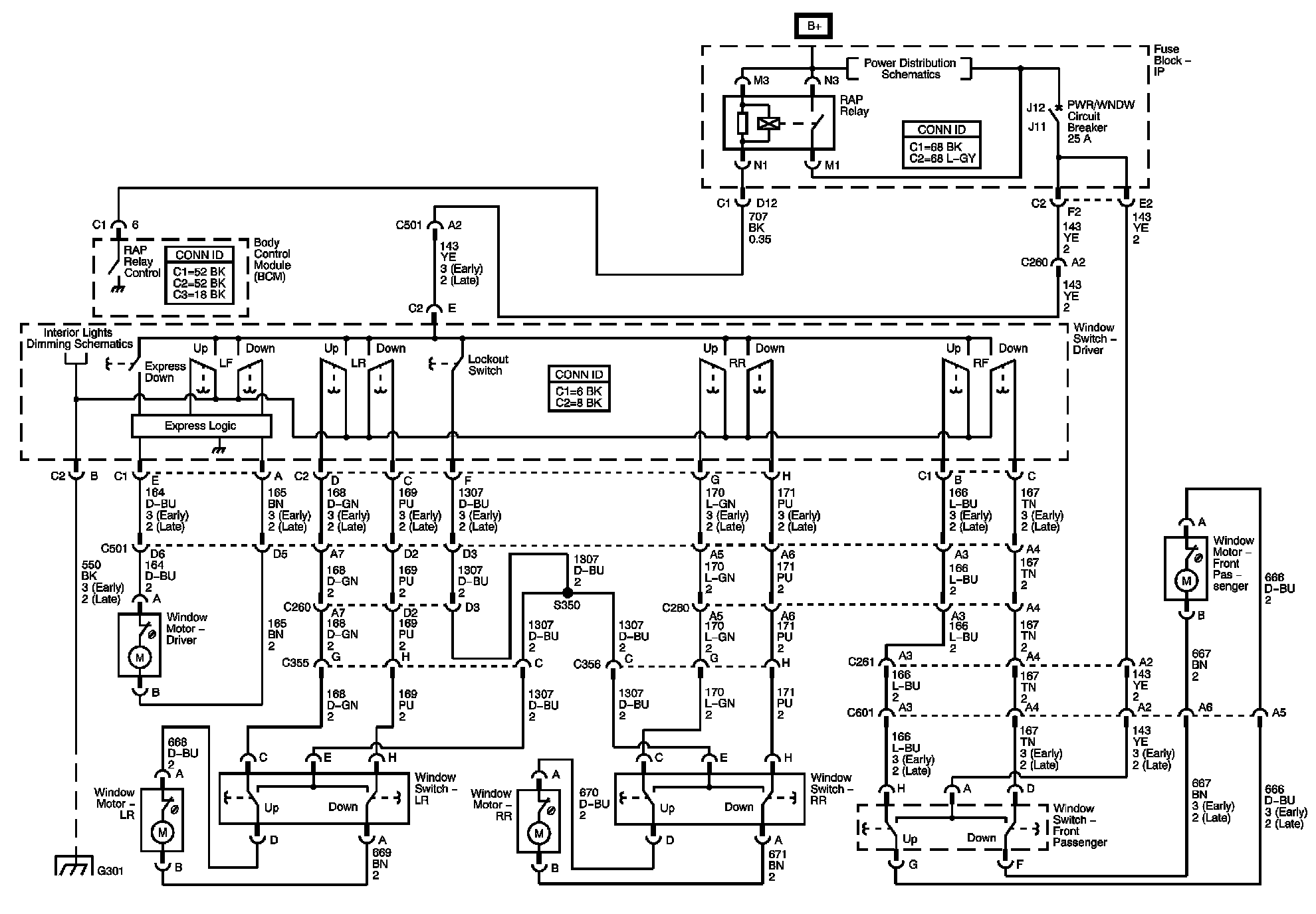 The locations for the Connectors, Grounds, Splices, and Grommets shown within these diagrams can be found via their numbers at Vehicle Locations.