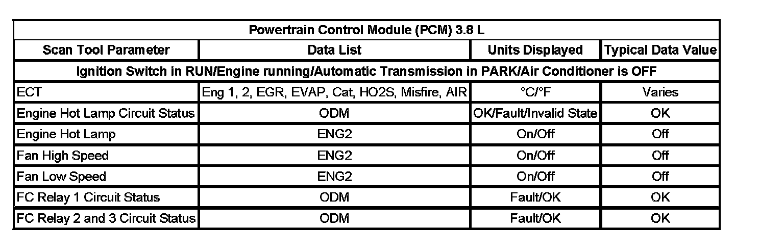 Scan Tool Data List (3.8L)