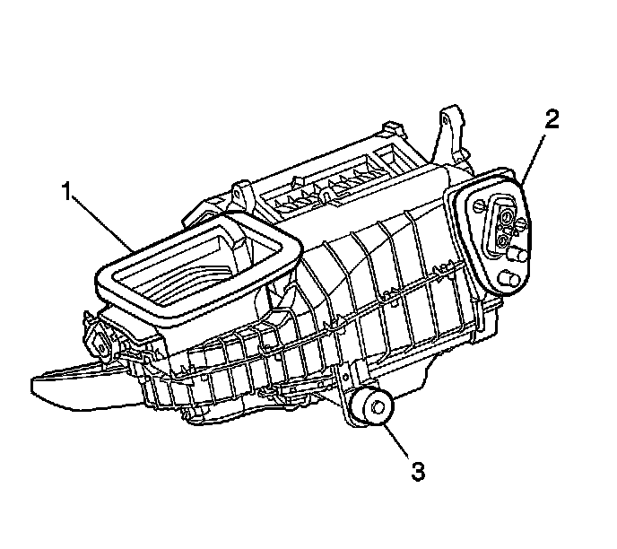 1. Install new seals (1, 2, 3) to the outer HVAC module assembly.