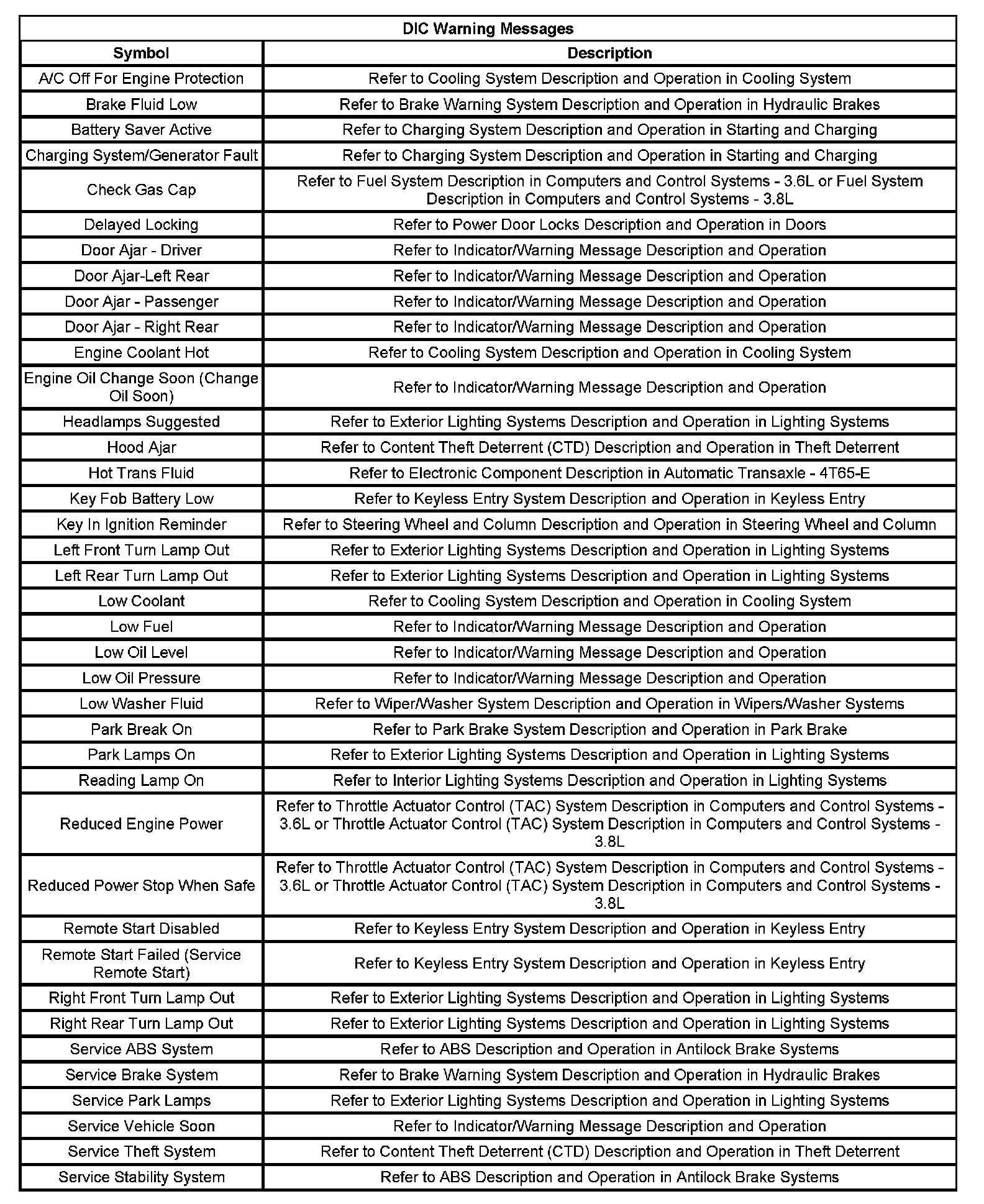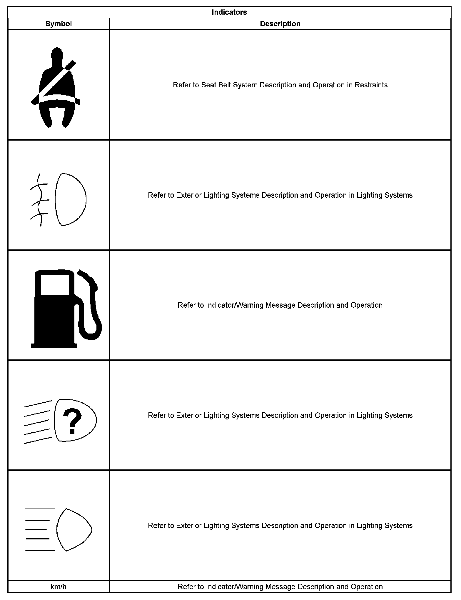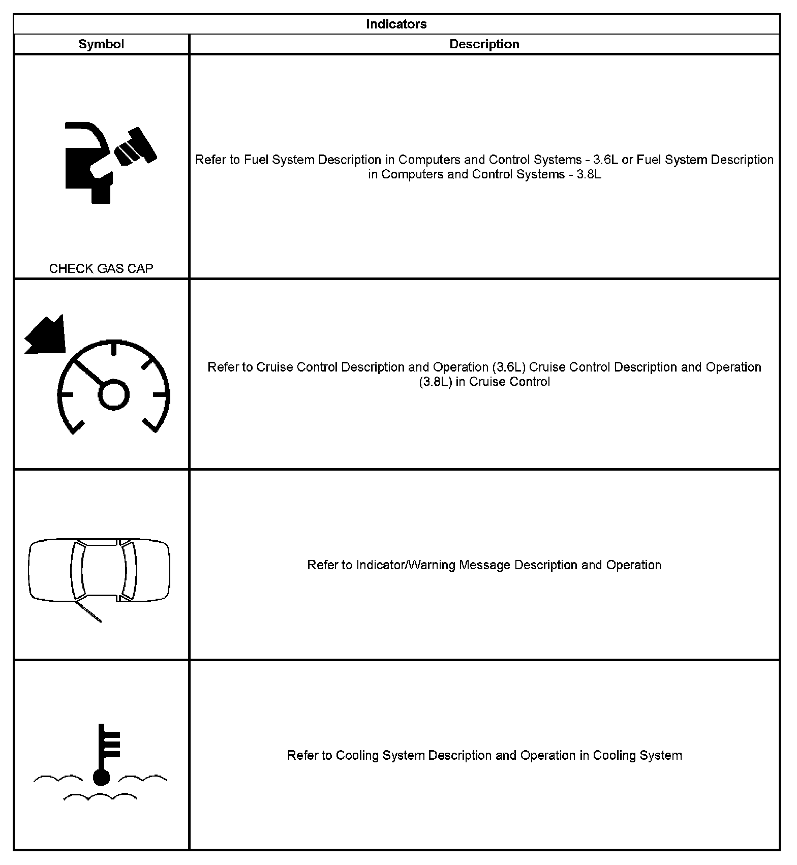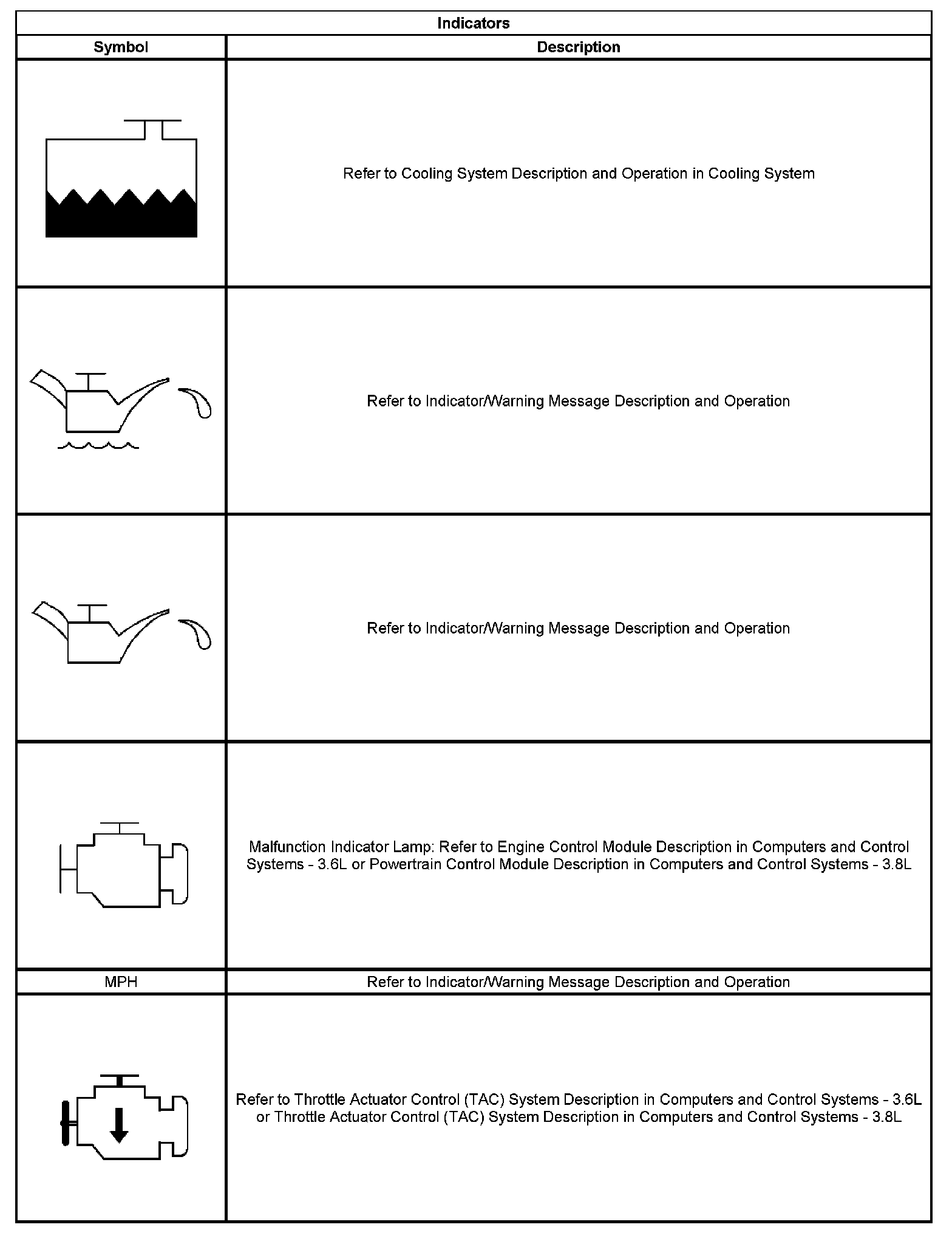 Indicator/Warning Message Description and Operation