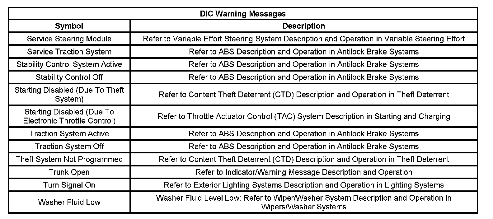 The instrument panel cluster displays the SERVICE VEHICLE SOON message in the DIC when the PCM/ECM detects certain vehicle malfunctions that are not related to the emissions system. The IPC receives a class 2 message from the PCM requesting the display of SERVICE VEHICLE SOON message in the DIC (if equipped with uplevel IPC UH8).